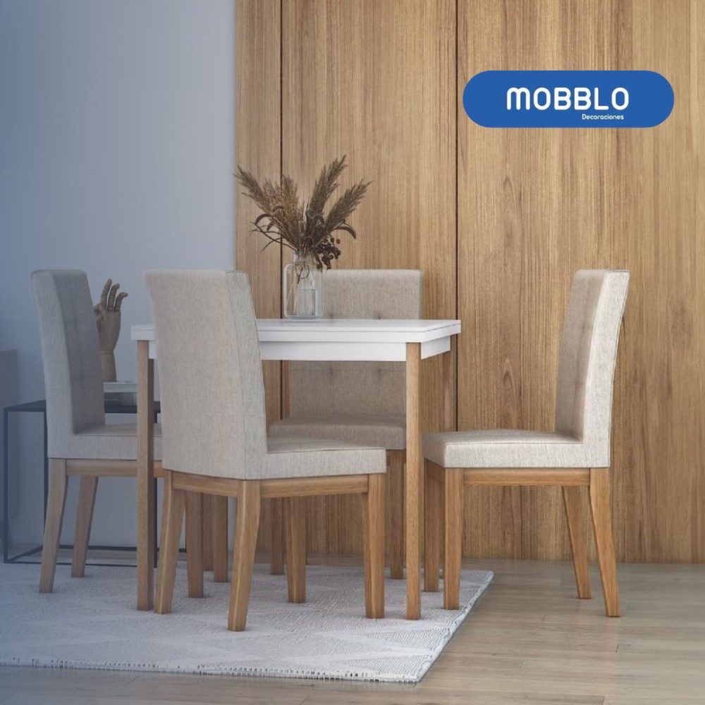Comedor 4 Puestos Madeira Eurolino Marfil, Natural