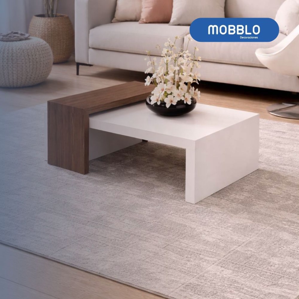 Mesa de Centro Jiggi elaborada con materiales de alta calidad, como el MDF y estructura roble 100%, con acabados en pintura de alta resistencia, color Blanco Semimate.